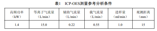 采用儀器生產(chǎn)廠家推薦的儀器工作參數(shù)。表1 給出了測量時參考分析條件。