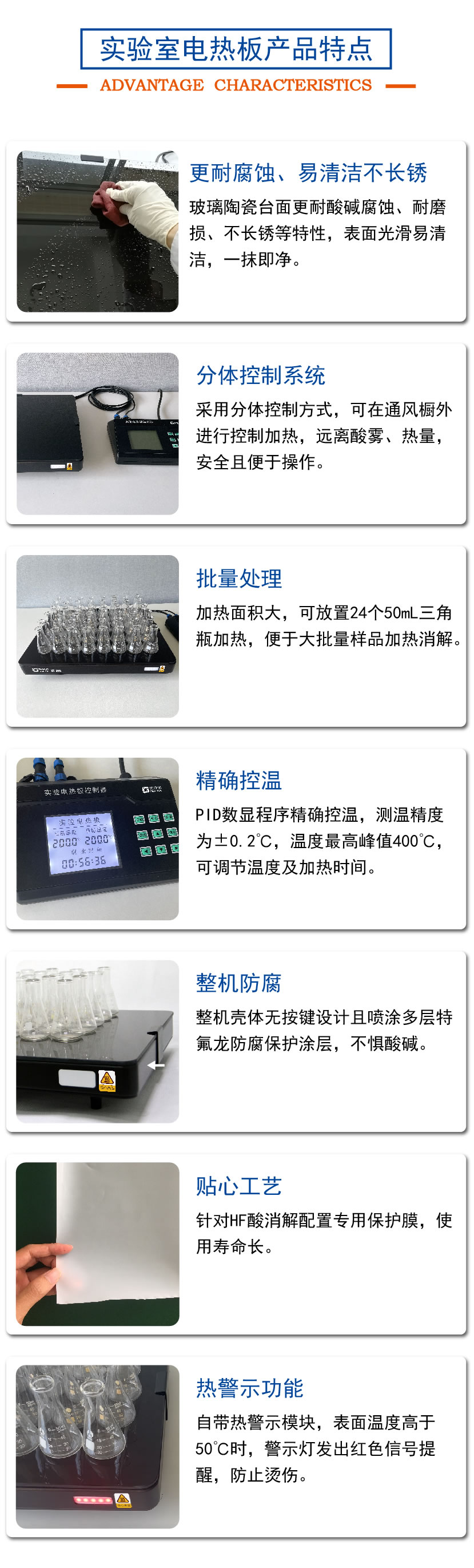 3.加熱面積比普通正規(guī)的電熱板要大,便于批量樣品處理,從而節(jié)省時間、節(jié)省成本。
