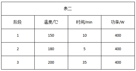 精確稱取切碎后的大蔥樣品 0.1g(精確至 0.1mg),置于消解罐底部,加入 8mL 硝酸,靜置 20min 左右,組裝消解罐,按照如下設置參數(shù)進行消解實驗: